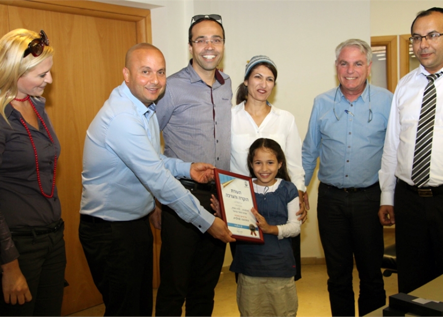 'Церемония состоялась в офисе мэра города Итамара Шимони в присутствии: депутата горсовета раввин Яков Авитан, депутата горсовета Мири Альтит, начальника департамента образования Ави Камински, председателя родительского форума Софи Хатубели Пинхас.