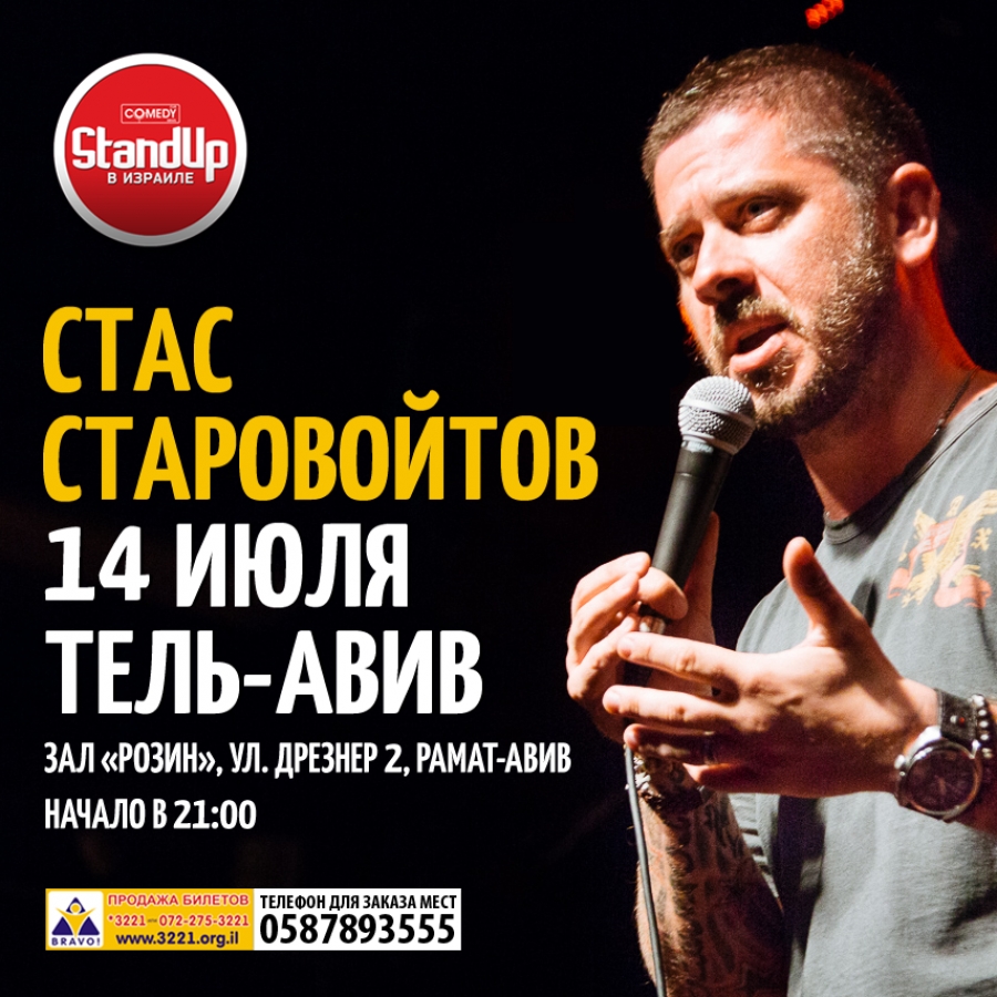 Стас Старовойтов, постоянный участник Stand-Up New Brand Show на ТНТ, в Израиле с новой программой! 14 июля, Тель-Авив, Аудиториум «Розин», начало в 21:00