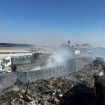 Во время пожара загорелся 10-тонный газовый баллон, который в настоящее время горит и находится под наблюдением пожарных.