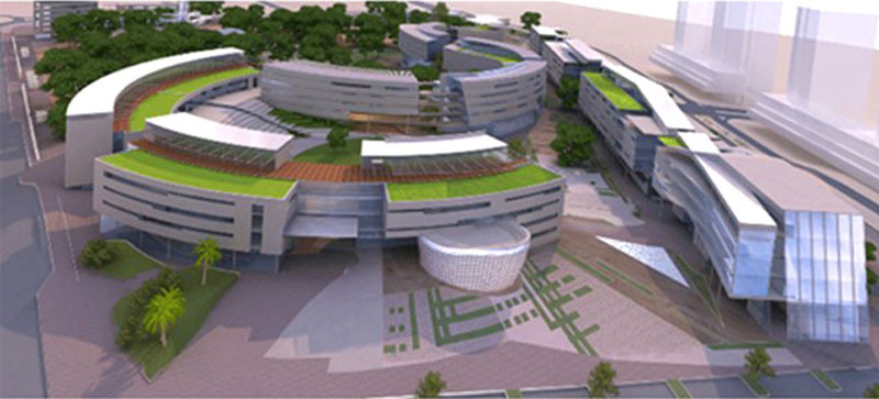 Согласно полученному разрешению, в особом районе будут построены 5 новых зданий. Первое здание будет иметь 3 этажа + технический этаж, в котором разместится библиотека и инновационный центр. Второе здание будет пятиэтажным, с техническим этажом, где разместятся учебные классы, кабинеты преподавателей и столовая. Остальные два здания, запланированные на первом этапе, будут одноэтажными, предназначенные для охранников и энергетического центра.