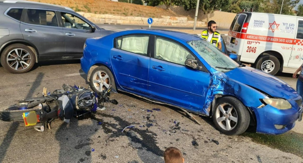 В 08:20 на горячую линию МДА 101 в Лахишском районе поступило сообщение о ЧП с участием мотоцикла и автомобиля на бульваре Моше Сена в Ашдоде у входа на кладбище.