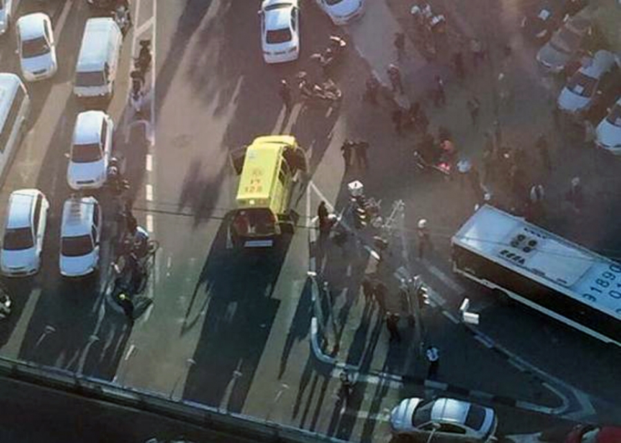 По меньшей мере, десять человек получили тяжёлые ранения в среду утром во время нападения с ножом на автобус в центре Тель-Авива.