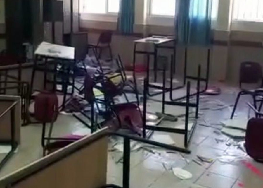 Девочки, которые учатся в школе "Ульпена Цвия", придя на учёбу после праздников, увидели жуткую картину разрушений, которую оставили, вероятнее всего, непрошенные гости в вечер праздника Рош а-Шана.