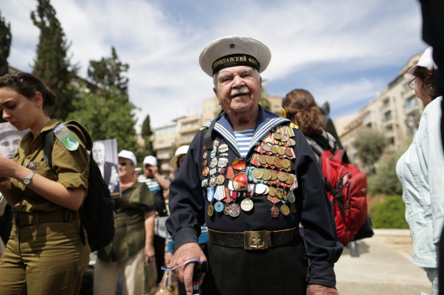'В торжественном шествии в центре столицы вместе с инвалидами и ветеранами войны прошли министр алии и абсорбции Зеэв Элькин, мэр Иерусалима Нир Баркат, депутаты Кнессета - Софа Ландвер и Ципи Ливни, послы и представители консульств России, Украины, Беларуси, Казахстана и Узбекистана, члены общественных и молодежных организаций, солдаты Армии обороны Израиля, дети, внуки и правнуки ветеранов, участников войны.