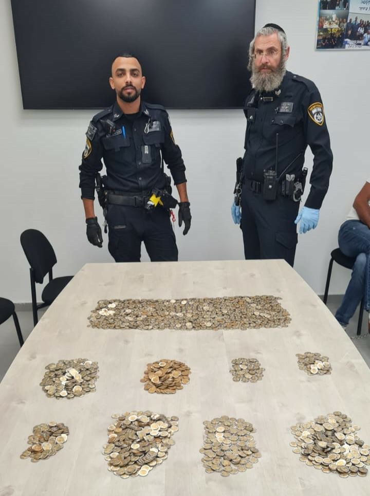 28 500 шекелей в монетах, подозреваемых в подделке, были изъяты рано утром на переходе Таркомия. Владелец задержан для допроса.