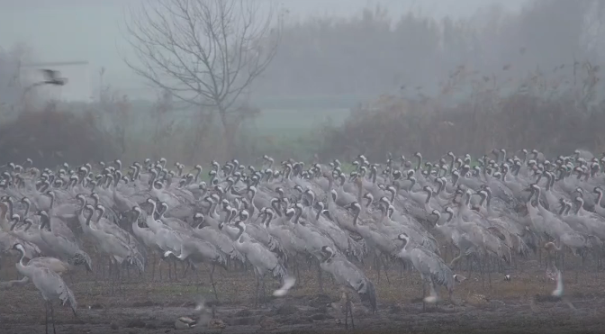 Как журавли переживают зиму в заповеднике Агмона Хула