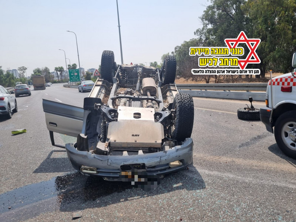 В 10:46 на горячую линию MDA 101 в районе Лахиш поступило сообщение о перевернувшемся автомобиле на шоссе 35 недалеко от перекрёстка Плугут. Медики и парамедики MDA оказывают медицинскую помощь и направляют 40-летнюю женщину в состоянии средней степени тяжести с травмами конечностей в больницу Барзилай.