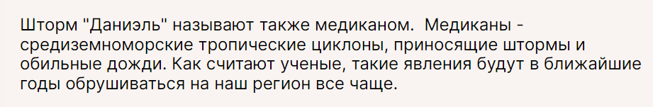 Первый в этом сезоне шторм Даниэль уже успел нанести огромный ущерб ряду стран. В катастрофическом наводнении в Ливии погибло около 2000 людей, еще больше 5000 считаются пропавшими без вести. Потом непогода наделала беды в Египте и Греции, где тоже есть погибшие - 11 человек. А ущерб измеряется не миллионами, а миллиардами евро.