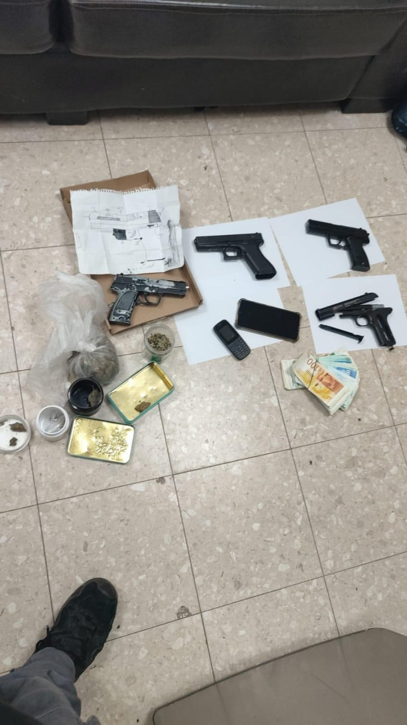 В ходе операции было изъято 5 пистолетов (2 стандартных, 1 «Мосав», 2 страйкбольных), различные виды боеприпасов, 300 граммов кокаина, около 2 килограммов марихуаны, а также десятки граммов героина, гашиша и наркотиков «экстази», а также оборудование, подозреваемое в краже, и денежные средства на общую сумму более 60 тысяч шекелей.