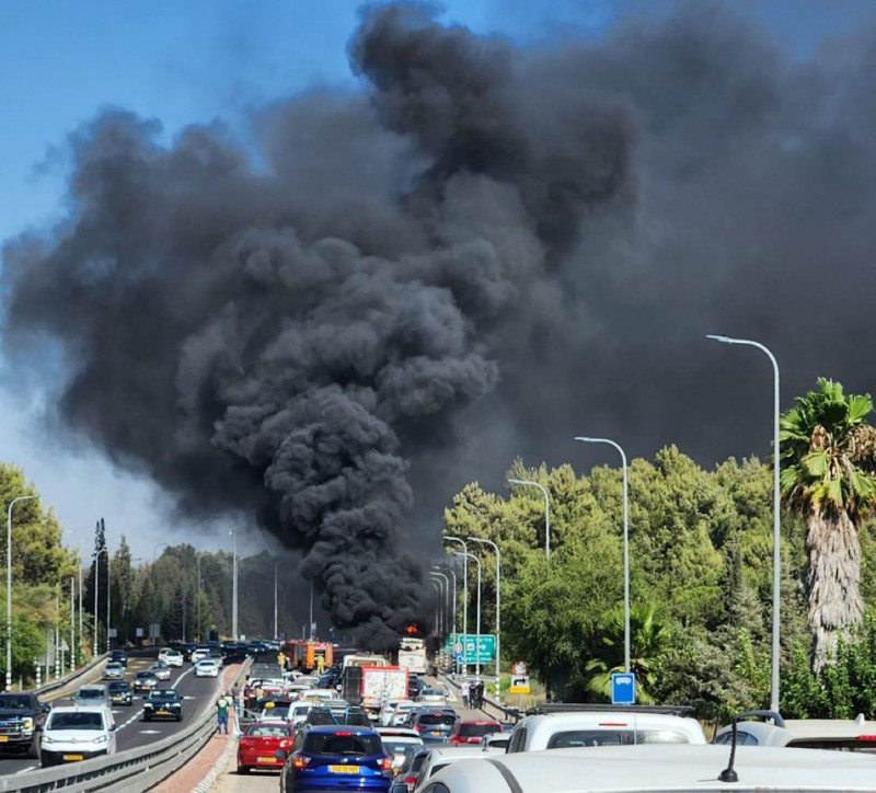 На шоссе №443 возле Модиина загорелся автобус прямо во время движения. Водителю удалось покинуть горящую машину. К счастью, на тот момент в автобусе не было пассажиров.