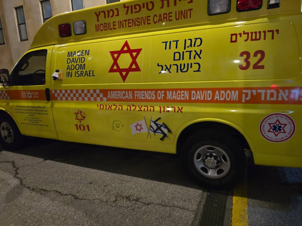 Сегодня ночью, около 3:00 утра, бригады скорой помощи и отделение интенсивной терапии MDA были отправлены для оказания помощи пациенту в районе Меа Шеарим в Иерусалиме. Пока парамедики и врачи вошли в квартиру пациента, чтобы оказать ему медицинскую помощь, неизвестные лица совершили акты вандализма в отношении машин скорой помощи MDA и нарисовали свастики на израильских флагах, изображенных по бокам.