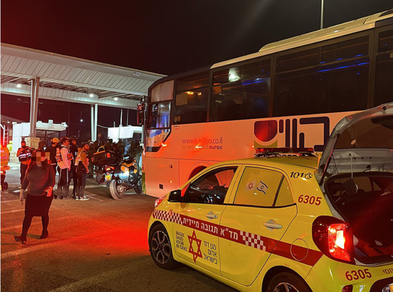 Парамедики "Маген Давид Адом" сообщили, что в результате теракта ранены четыре человека, из них двое, 12-летний ребенок и 40-летняя женщина, получили огнестрельные ранения. Состояние ребенка тяжелое (пуля ему попала в шею), ранение женщины средней тяжести, они доставлены в больницу "Адаса Эйн-Керем" в Иерусалиме. Еще два человека получили порезы разлетевшимися осколками стекол.