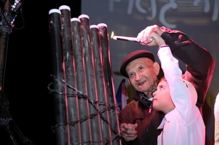 На открытии церемонии исполняющий обязанности мэра Томер Глам вместе с пережившим Холокост Давидом Ариэлем зажег свечи в память о шести миллионах евреев, погибших в Холокосте. Псалом прочитал Моми Малка, отец Тали Хатуэль (ז"ל), которая была убита вместе с ее четырьмя дочерьми на трассе Кицуфим.