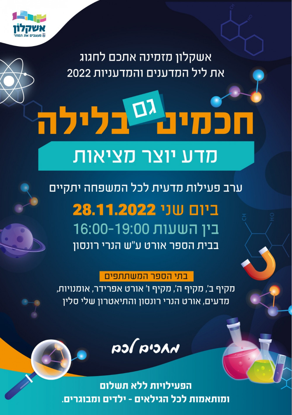 Ашкелон приглашает отпраздновать Ночь умных ученых (взрослых и детей)