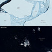 В начала путешествия площадь айсберга составляла больше 4000 км² (это чуть меньше, чем территория Иудеи и Самарии). Но в 2025 году от него откололись крупные куски, и к январю 2026 года его площадь уменьшилась до 1182 км². К апрелю он переместился в более теплые воды, к северу от Южной Георгии и Южных Сандвичевых островов, дрейфовал и стремительно таял. На первом снимке показано, каким айсберг был в 1986 году и каким стал в начале апреля 2026 года. На остальных фото и видео — айсберг в 2025 году.