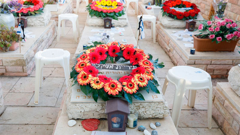 Рано утром муниципалитет Ашкелона возложил сотни траурных венков и поминальных свечей на все надгробия павших в боевых действиях и жертв терактов на кладбищах города.