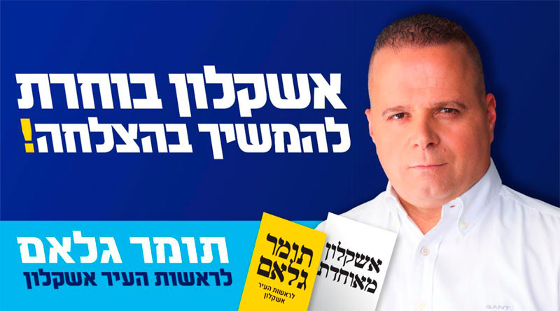 В четверг, 10 августа 2023 г., мэр Ашкелона Томер Глам начал свою предвыборную кампанию на октябрь 2023 г. под лозунгом «Ашкелон выбирает успешное продолжение».