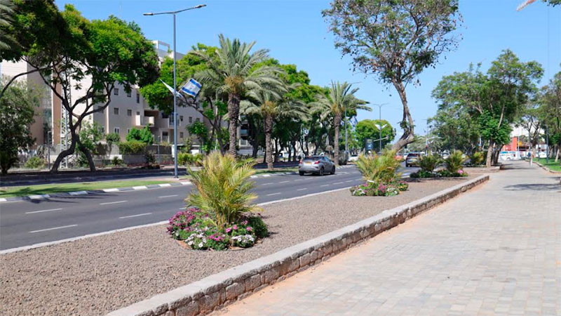 «Еще один завершенный проект - вдоль бульвара Менахем Бегин от центрального въезда в город, превратил старую дорогу возле жилых домов в красивый зеленый бульвар, в котором есть зоны отдыха и привлекательная уличная мебель при сохранении существующих естественных деревьев».