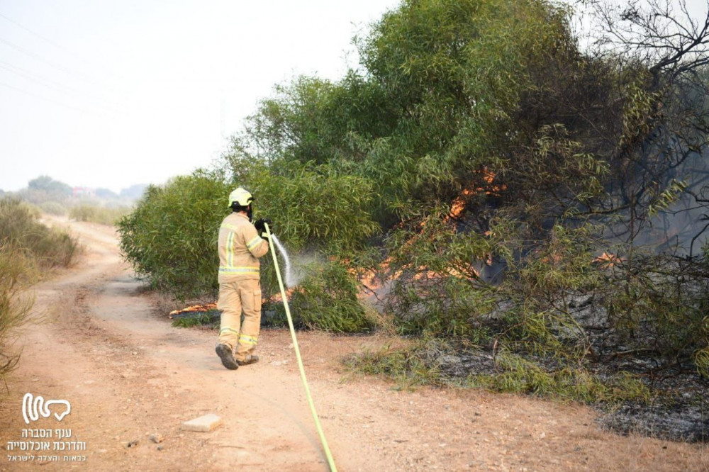 Крупный пожар кустарника возле автостоянки и автобусного парка в Ашкелоне: пожарные силы действуют на месте