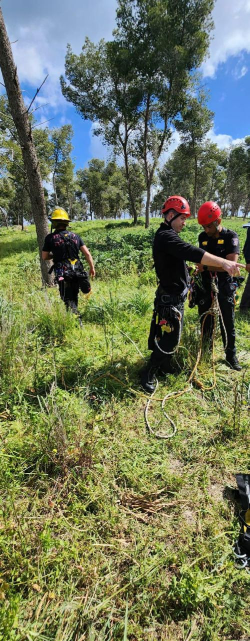 На вызов прибыла бригада специального спасательного отряда в составе пожарных районной станции Ашкелон, по прибытии на место команда приготовилась к спасению козы с помощью специальной техники.