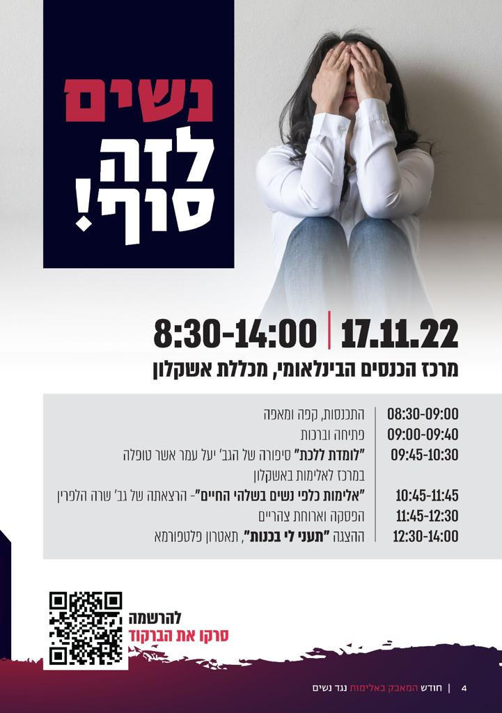 Месячник борьбы с насилием над женщинами в Ашкелоне: лекция и презентация "Мы положим этому конец!"