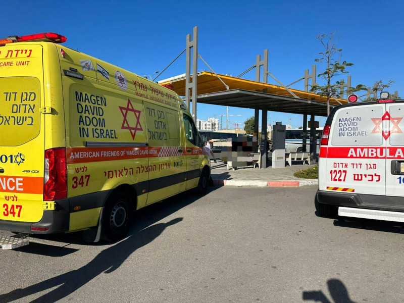 В 09:18 в центр 101 MDA в Лакишском районе поступило сообщение о том, что автобус сбил двух пешеходов на автобусной остановке возле железнодорожного вокзала Ашкелона.