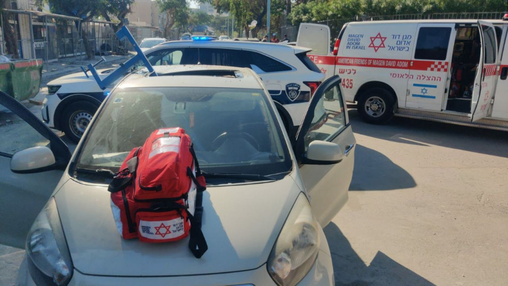 В 11:33 на горячую линию МДА 101 в Лахишском районе поступило сообщение о том, что какой-то предмет упал с крана и попал в автомобиль возле строительной площадки на улице Харев в Ашдоде. Медики и фельдшеры MDA оказали первую медицинскую помощь и отвезли 55-летнюю женщину в больницу Ассута Ашдод в легком состоянии с синяками на верхней части тела.