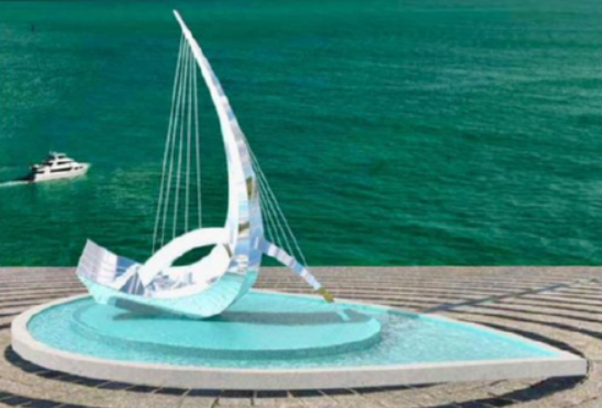 Скульптурный элемент на высоте 7,5 метров с отражающим бассейном, скамейками и зонами отдыха на возвышении, велосипедными и пешеходными дорожками и другими удобствами, дополняющими впечатления от новой впечатляющей набережной, расположенной на первой линии от моря.