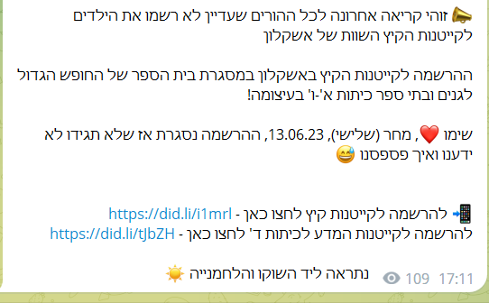 להרשמה לקייטנות קיץ לחצו כאן - https://did.li/i1mrl