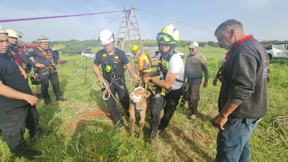 Пожарно-спасательная команда станции Ашкелон вытащила теленка из ямы глубиной 50 м