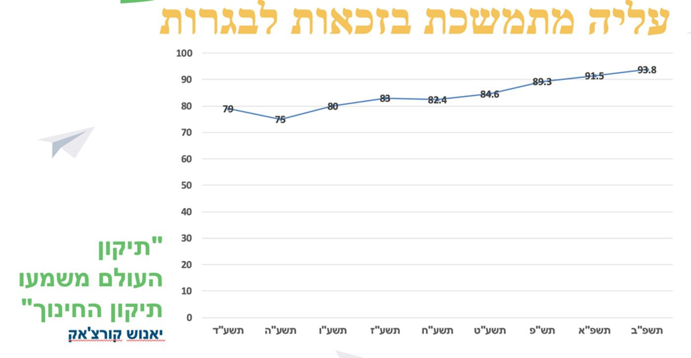Еще одна цифра, наблюдаемая в образовательной картине, - это процент тех, кто имеет право на получение отличного аттестата зрелости, который составляет 12% от общего числа, и эта цифра поможет студентам при поступлении в престижные университеты и на факультеты Израиля.