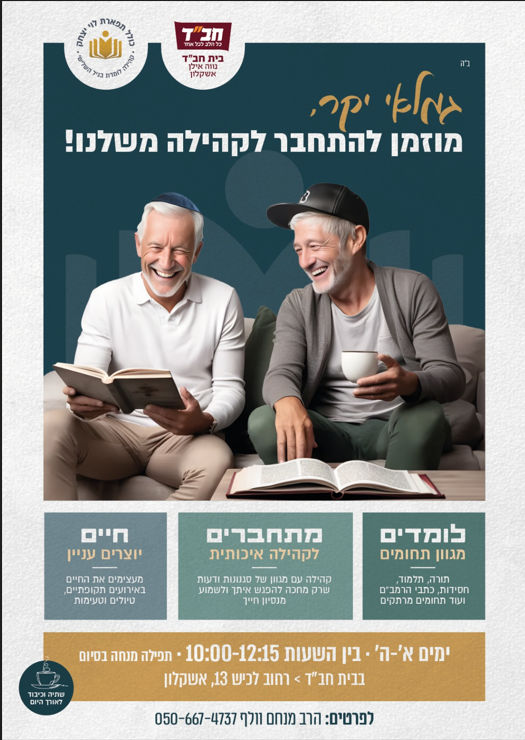 Сообщество пенсионеров Бейт Хабад Неве Илан в Ашкелоне приглашает присоединиться