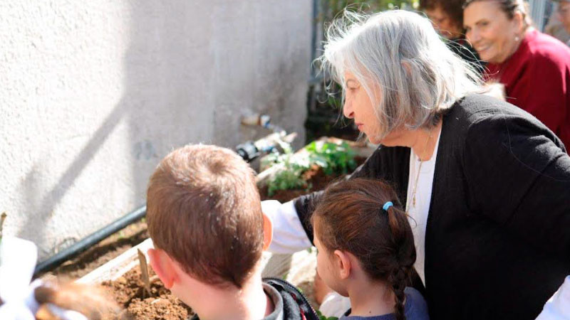 Дети и пожилые жители Ашкелона отмечают Ту би-Шват межпоколенческой посадкой деревьев.