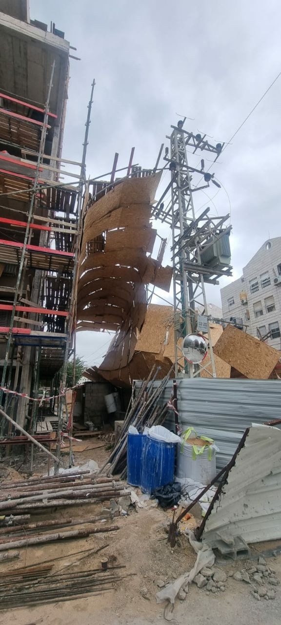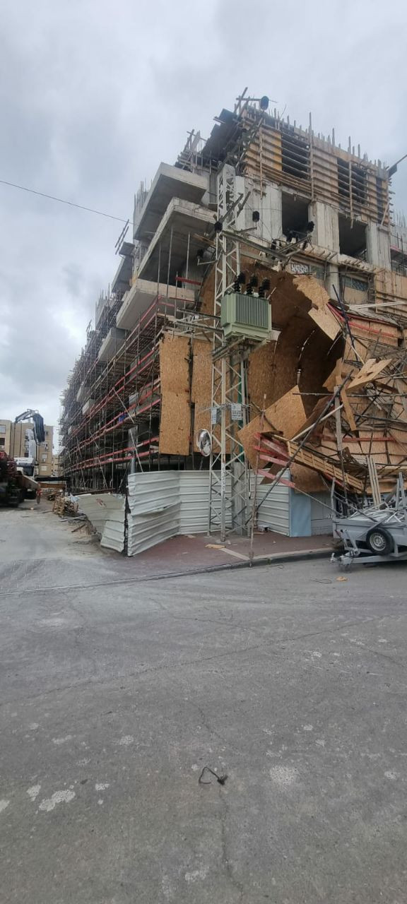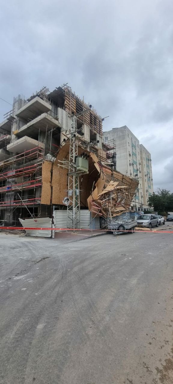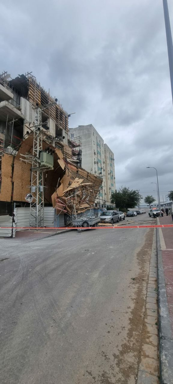 После непогоды бойцы станции Ашдод выехали на место обрушения строительных лесов на улице Рабби Акива.