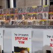 Мэрия Ашкелона установила на площадке перед городским Дворцом культуры трогательную экспозицию под знаком праздника Ханука и в честь похищенных, до сих пор находящихся в неволе у ХАМАСа.
