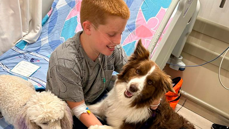 Терапевтическая кинология основана, среди прочего, на интерактивных встречах с собаками с целью улучшения физического и психического самочувствия госпитализированного ребенка.
