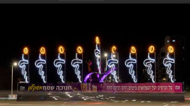Как и каждый год, муниципалитет Ашкелона установил уникальные гигантские меноры Хануки в различных районах города, которые будут освещать ханукальные свечи каждый день праздника. Меноры можно найти на набережной Рафаэль Эйтаньа, площади Ха-Савивон, набережной Цфания, бульваре Менахем Бегин, теннисной площади и площади Гистадрут.