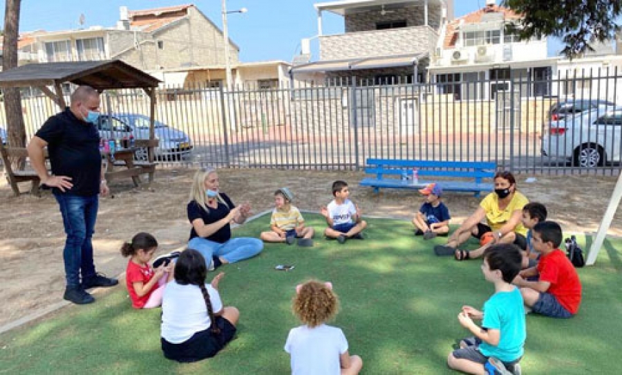 Мэр Томер Глэм, утром в понедельник, 21 сентября, посетил "шматрафию" (комнату с няней) в школе "Арлозоров", которую муниципалитет открыл в этот день для детей "жизненно необходимых" работников системы здравоохранения.