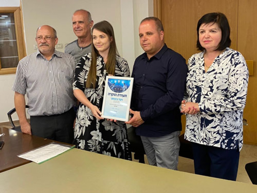 На минувшей неделе стипендия и почетная грамота были вручены Николь в торжественной обстановке мэром Томером главом и первым заместителем мэра Софьей Бейлиной.