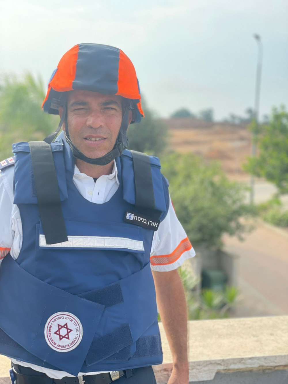«Из-за стрельбы выйти из дома не было возможности и ко мне пришли местные силовики, которые знают, что я фельдшер МДА и что возле моего дома регулярно дежурит реанимационный автомобиль и принесли 2 огнестрельных ранения. Пока я занимался спасательным лечением, боевики продолжали сражаться снаружи, а некоторые из них даже поднялись на крышу дома и продолжили бой с балкона. Моя 11-летняя дочь находилась дома, и чтобы она не подвергалась опасности, боевики перенесли ее в безопасное место с завязанными глазами. Через несколько часов нам удалось под боевым огнем доставить раненых бойцов к воротам кибуца, а оттуда их перевели в пуленепробиваемое отделение реанимации для продолжения лечения в госпитале».