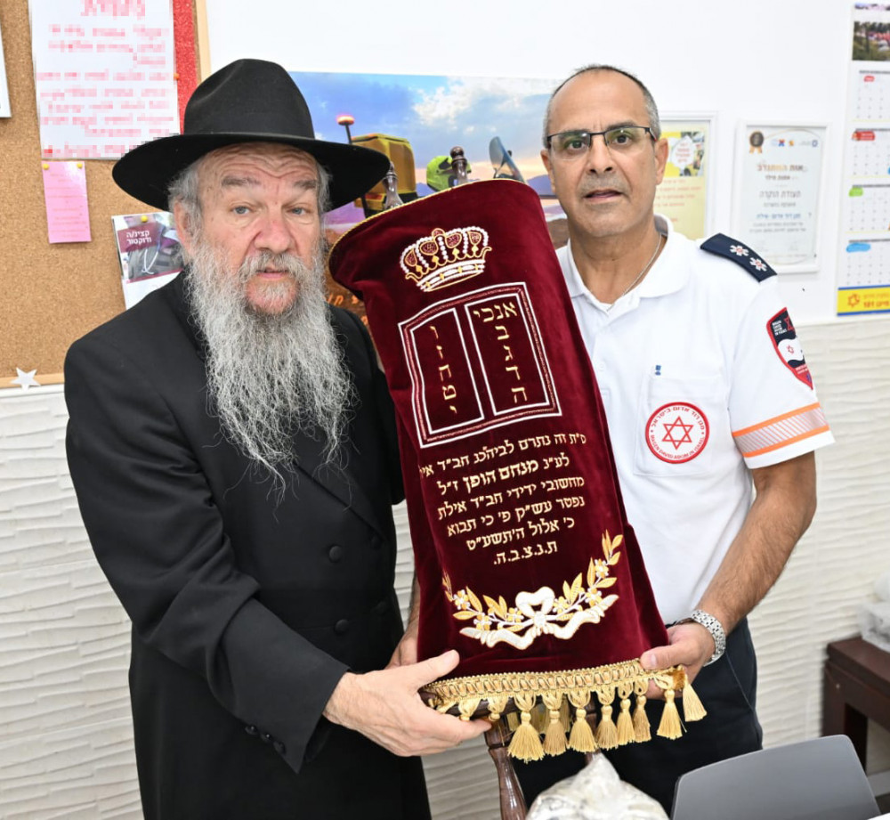 Представление свитка Торы в память о покойном Менахеме Хоппене, руководившем станцией MDA в Эйлате