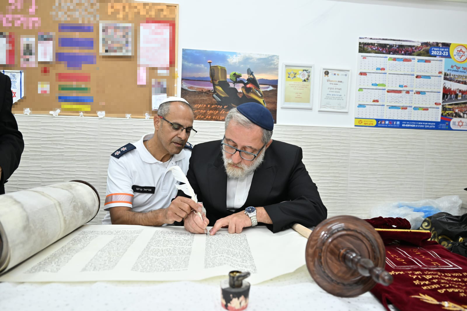 В прошлый вторник на станции MDA в Эйлате состоялось захватывающее и особенное событие – завершение написания свитка Торы в память о бывшем начальнике станции и жителе города, покойном Менахеме Хофене. Мероприятие началось на станции MDA с завершения написания книги в присутствии мэра Эйлата Эли Ланкри, главного раввина Эйлата раввина Йосефа Хехта Шалиты, раввина Кляйна Менди, директора Эйлатского Дома Хабада, директора Габи Бариво. Эйлат-Илотского отделения МДА, сотрудников и волонтеров станции МДА в городе, членов семьи и друзей покойного Менахема Хофена и многих жителей. и продолжил процессию к дому Хабада в городе, где его привели в синагогу.