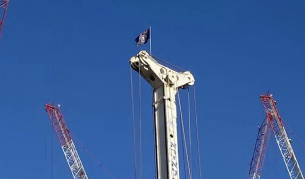 Флаг был поднят с помощью крана на строительной площадке. Властям еще предстоит установить личность человека, который его поднял, но предполагается, что это был кто-то, кто имел доступ к месту, возможно, член строительной бригады.