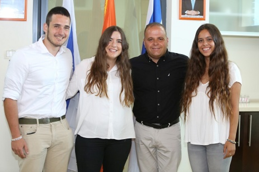 'На этой неделе исполняющий обязанности мэра Томер Глам встретился с тремя выпускниками 12-го класса, жителями города, которые отправляются за рубеж до призыва в ряды ЦАХАЛа.