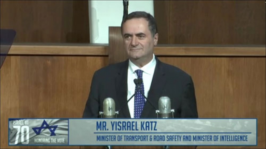 Министр транспорта и разведки Исраэль Кац принял участие в мероприятии, приуроченном к 70-летию исторической резолюции ООН от 29 ноября 1947 года [План раздела Палестины, позволявший создать на подмандатной британской территории, после ухода англичан, еврейское и арабское государства.