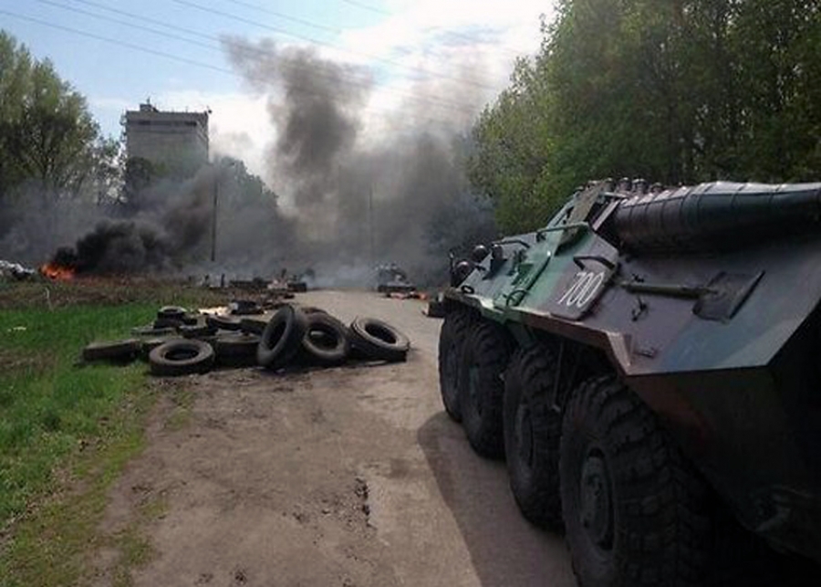 'В четверг подразделения украинской армии и национальной гвардии при поддержке авиации и бронетехники начали полномасштабную боевую операцию против восставших на Юго-Востоке Украины. Наступление идёт широким фронтом – в зоне интенсивных боестолкновений оказались сразу несколько городов Донецкой области. Первым удар принял на себя Славянск, который контролируют ополченцы. Незадолго до начала штурма на подступах к городу активно происходило сосредоточение тяжёлой техники в сопровождении штурмовых вертолётов. Для того, чтобы максимально осложнить наступление, активисты восставшего города подожгли покрышки. Из города поступает противоречивая информация. Как передаёт официальное украинское агентство УНИАН, войска на бронетранспортёрах прорвались через блокпост на севере от города. По другим данным, атаку всё-таки удалось отбить. Одновременно возле блокпоста на трассе Харьков — Ростов также завязался бой, в воздухе барражируют вертолёты. К этому времени уже есть сообщения об убитых. По последним данным, в город пытаются зайти пять БТР со стороны блокпоста «Комбикорм».
