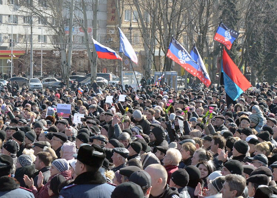 'Вчера вечером в Донецке впервые с начала политического кризиса на Украине произошли серьёзные столкновения между сторонниками и противниками новой власти, есть жертвы. По официальным данным погиб один человек (некоторые украинские СМИ называют цифру два или даже три), от 17 до 50 пострадали. По непонятным причинам митинг «За единую Украину» был заявлен на площади Ленина – там же, где митинговали сторонники воссоединения с Россией. В обоих мероприятиях участвовало равное количество народу – приблизительно по две тысячи человек. Однако по их окончанию начались столкновения пророссийских активистов и сторонников единой Украины. При этом последние проявили явно большую подготовленность: в ход шли петарды, газовые баллончики, биты, дымовые шашки, ножи, арматура и травматическое оружие. Вот что рассказал один из активистов Народного ополчения Донбасса: