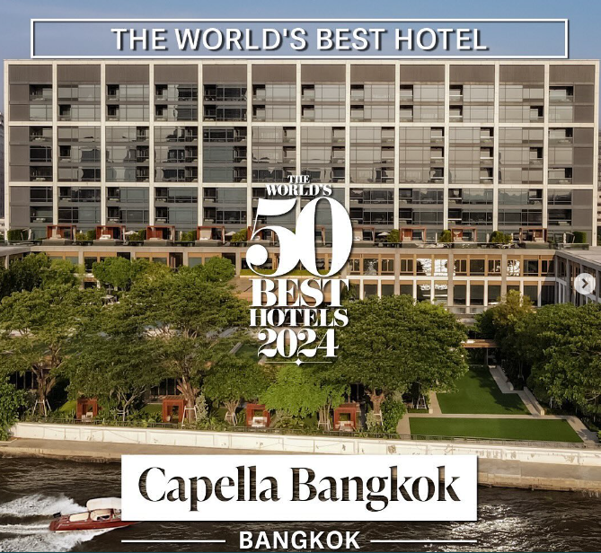 Отель Capella Bangkok открылся в разгар пандемии COVID-19 в 2020 году на берегу самой большой реки Таиланда, Чаупхрая, и уже в 2023 году попал в рейтинг 50 лучших отелей мира, заняв 11-е место. В текущем году он не только возглавил общий рейтинг, но также был назван лучшим отелем Азии. В отеле 101 номер и семь отдельных вилл на берегу реки, ресторан, отмеченный звездами Мишлен, и огромный спа-комплекс.