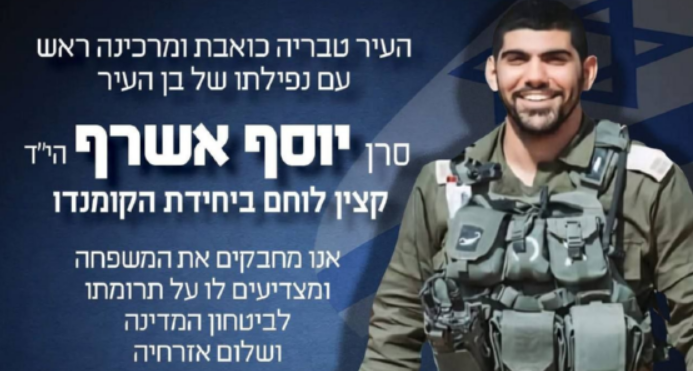 Муниципалитет Тверии опубликовал траурное сообщение о смерти 28-летнего капитана резерва Йосефа-Хаима Ашрафа: его тело было обнаружено в лесу возле города в четверг вечером.