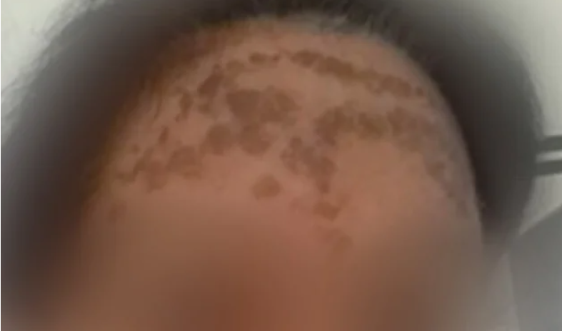 Вскоре после этого женщина ощутила жжение на лице. На следующий день появились ожоги и отеки, так, что она не могла открыть глаза. Врач посоветовал ей принимать стероиды и наносить крем. Но когда отеки сошел, на лице остались струпья, которые превратились в темные пятна, особено яркие на лбу.
